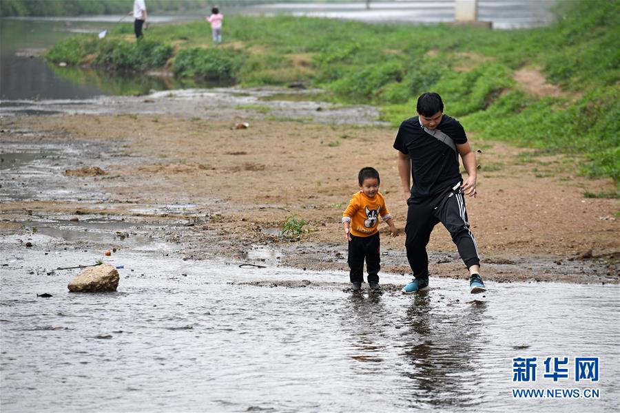 2019年12月22日,家长带着孩子在深圳龙岗河上玩耍。 新华社记者 梁旭 摄