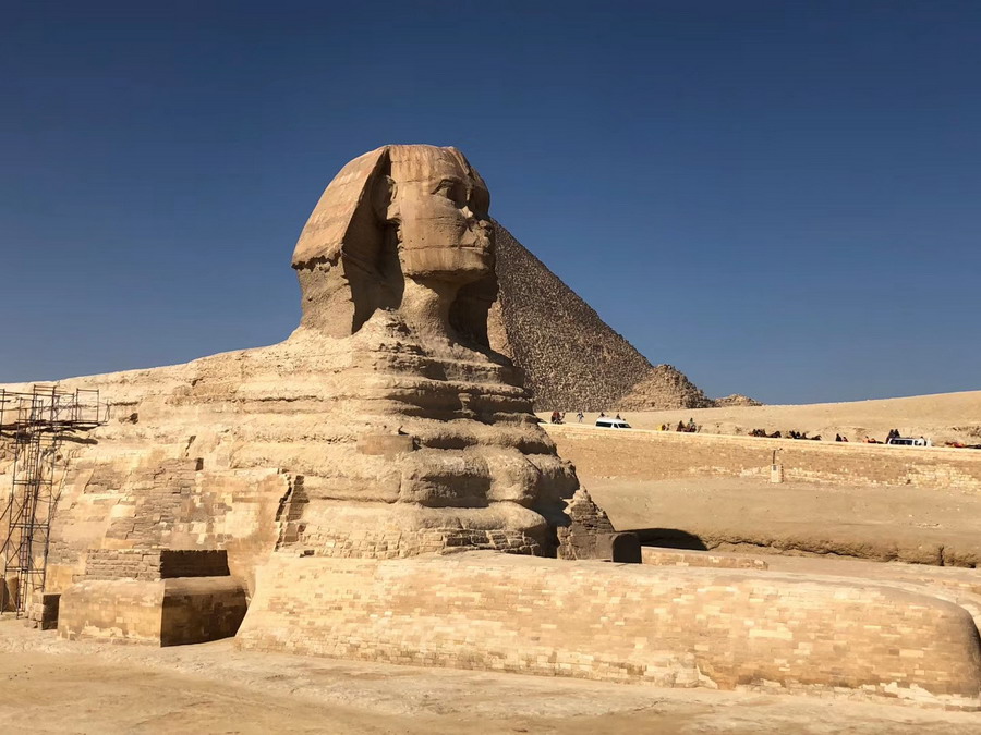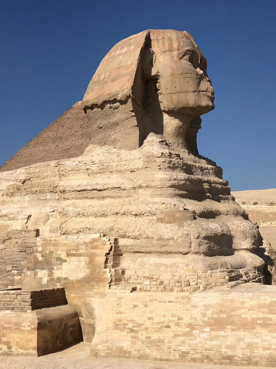 狮身人面像位于埃及吉萨的金字塔墓区,头像部分一说是古埃及法老哈夫拉按自己的肖像建造。孙卫南摄
