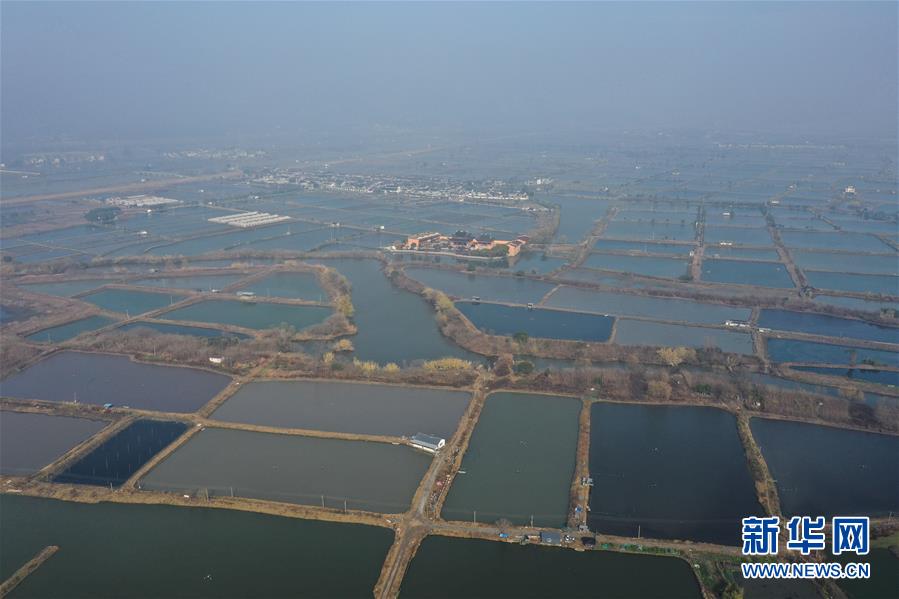 12月28日无人机拍摄的菱湖镇的水产养殖鱼塘。新华社记者黄宗治摄