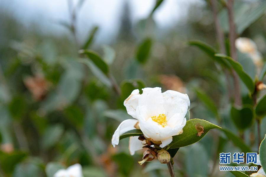 油茶树开出的花装扮着酉阳县车田乡的冬季。作为车田乡主导产业,漫山遍野的油茶树成了老百姓的“摇钱树”,带动车田乡的1013户农户增收。新华网 李相博 摄