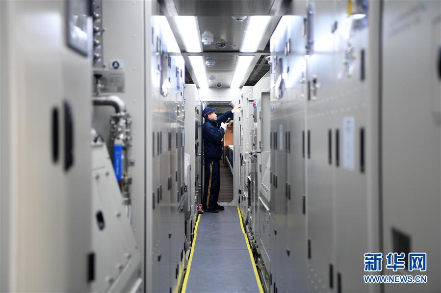 1月7日,铁路员工在对CR200J动车组列车车内设施进行检测维护。新华社记者唐奕摄