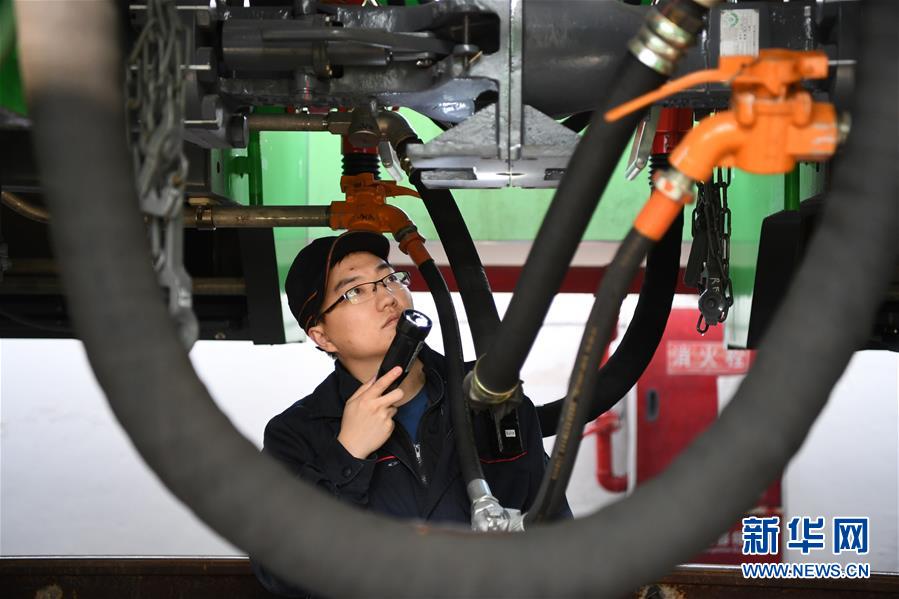 1月7日,铁路员工在对CR200J动车组列车进行检测维护。新华社记者唐奕摄