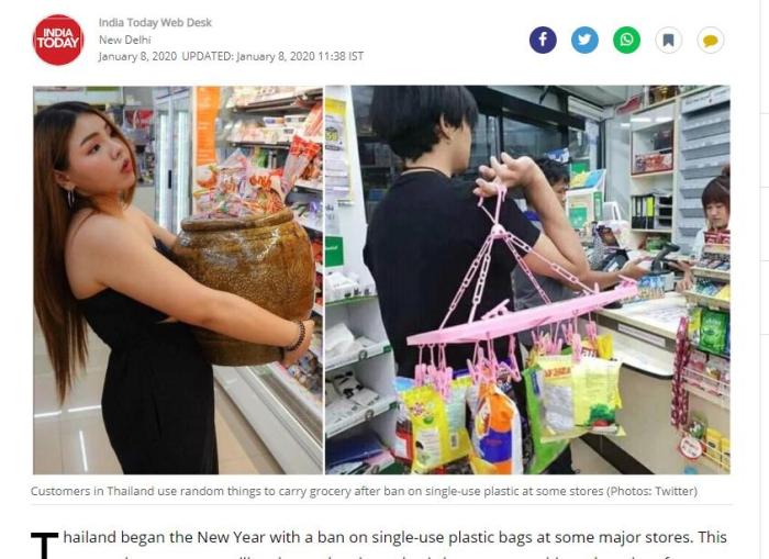 泰国人用各种创新的方式来装购买的物品。来源:《今日印度》报道页面截图