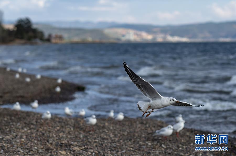这是抚仙湖边的鸟类(1月10日摄)。 新华社记者 江文耀 摄