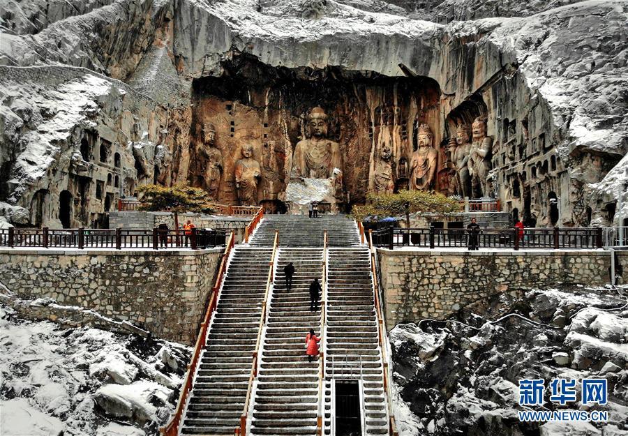 1月9日无人机拍摄的洛阳龙门石窟奉先寺。新华社记者李安摄