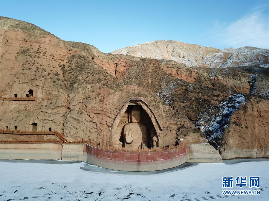 这是1月11日拍摄的天梯山石窟(无人机照片)。新华社记者马宁摄