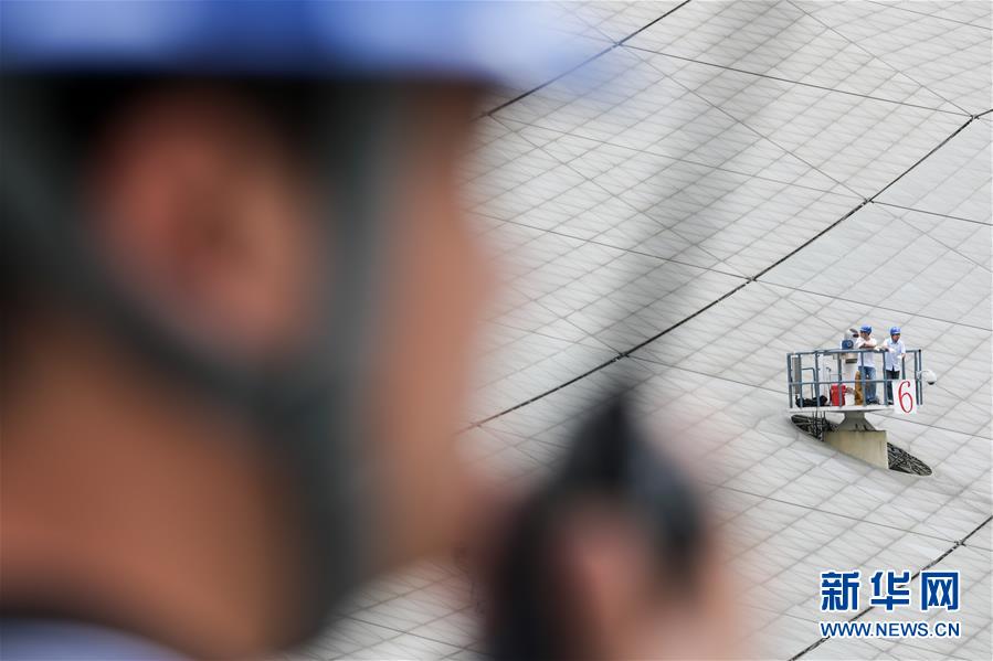 8月28日,工作人员在“中国天眼”内进行检修。新华社记者欧东衢摄