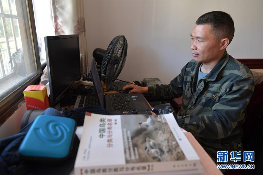 在江西九连山国家级自然保护区润洞保护站,陈志高在电脑上查看拍摄的照片(1月8日摄)。新华社记者 彭昭之 摄