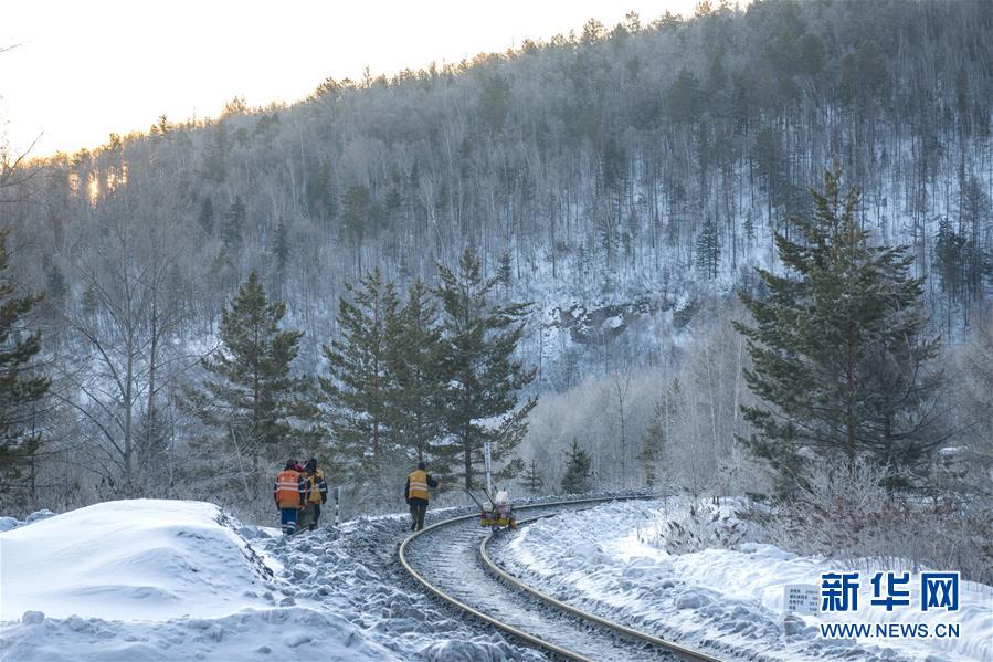 1月8日,西罗奇维修工队工作人员在嫩林线497公里处进行维修作业。新华社记者王毓国摄