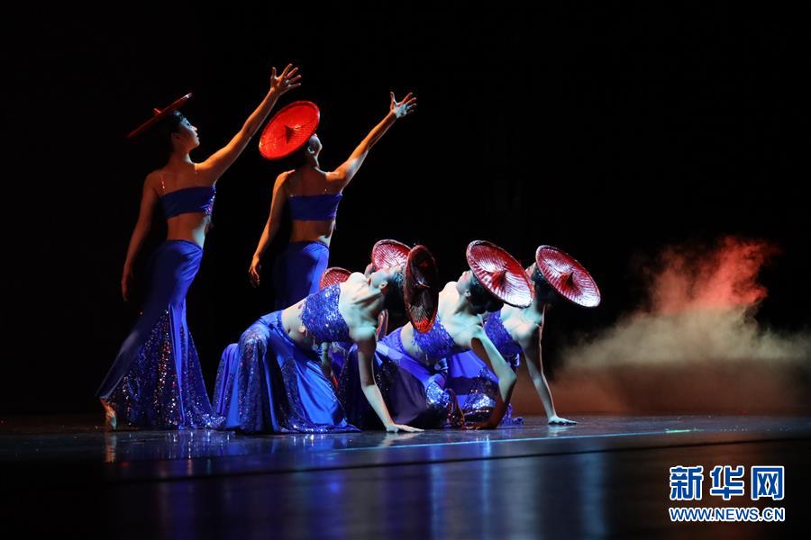 1月11日,在美国休斯敦举办的“拥抱春天”晚会上,演员表演傣族舞《山灵》。