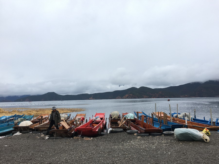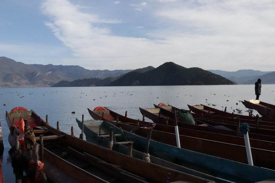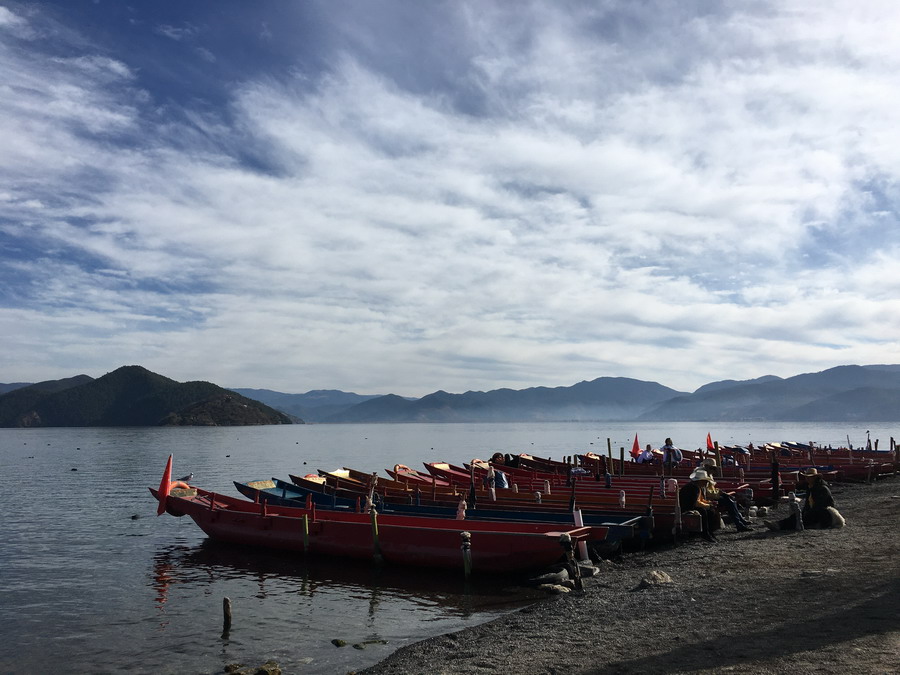 滇川交界处的泸沽湖湖面海拔2690米,面积约50平方公里,因水质良好而闻名;世居湖畔的摩梭人因保留着母系氏族社会遗俗而神秘。施冰冰摄