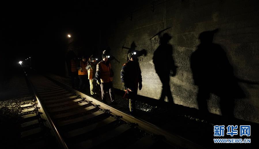1月6日,在加格达奇工务段西罗奇岭二号隧道,西罗奇维修工队工作人员进行维修作业。新华社记者才扬摄