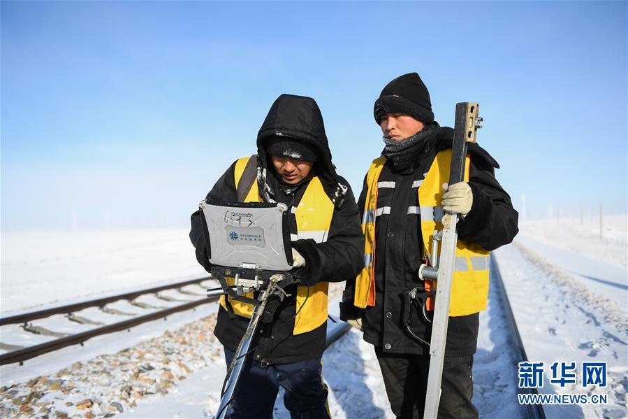 1月8日,西罗奇维修工队工作人员在嫩林线497公里处进行维修作业。新华社记者王毓国摄