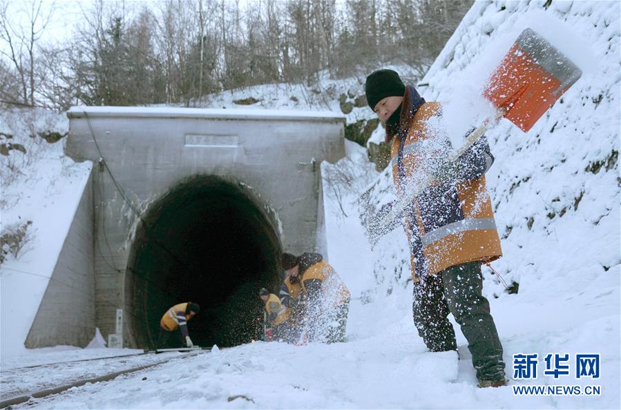 1月7日,西罗奇维修工队工作人员在加格达奇工务段西罗奇岭二号隧道附近进行维修作业。新华社记者才扬摄