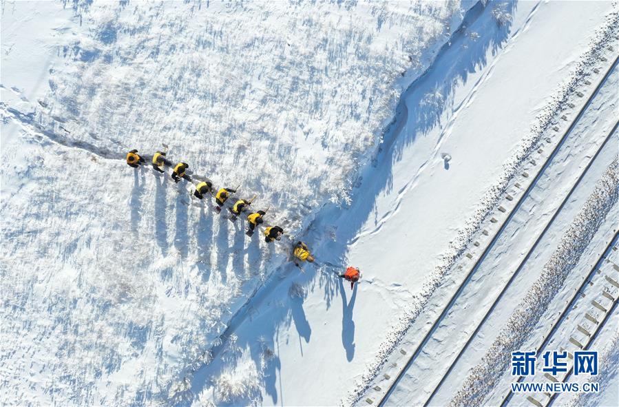 1月13日,白音库伦综合维修车间线路养护职工前往作业点。新华社记者刘磊摄