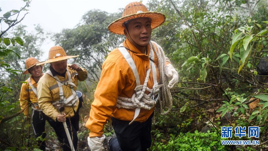 1月14日,百色工务段白水河桥隧工区班组成员在搜山扫石。在中国铁路南宁局集团公司百色工务段白水河桥隧工区,有一个由14名工人组成的班组。他们常年像“爬山虎”一样行走攀爬在地形险峻、云雾缭绕的高山上,负责南昆铁路辖区路段的搜山扫石工作,清除一切可能危害铁路行车安全的因素,保障旅客出行安全。新华社记者张爱林摄