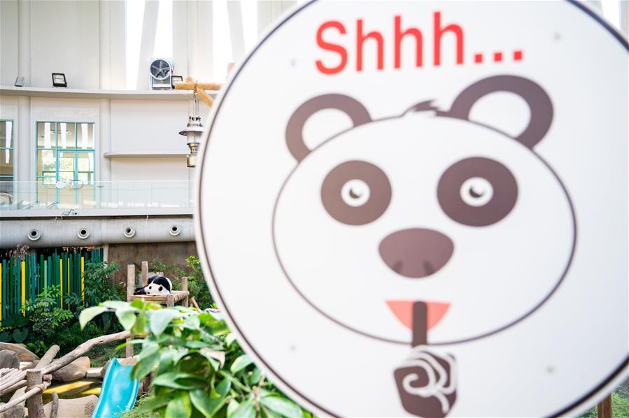 1月14日,在马来西亚吉隆坡附近的马来西亚国家动物园,大熊猫宝宝“谊谊”在睡觉。马来西亚国家动物园14日为在马出生的第二只雌性大熊猫宝宝“谊谊”庆祝两周岁生日。新华社记者朱炜摄