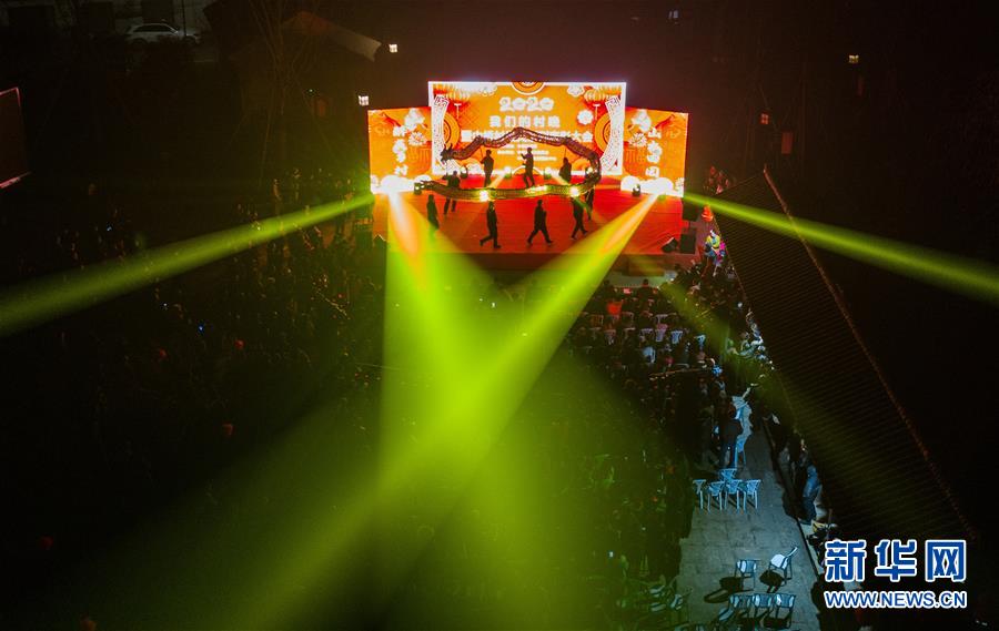 1月14日,杭州市余杭区中泰街道中桥村的文化公园内在进行“我们的村晚”表演。临近春节,浙江省杭州市余杭区中泰街道各村社的文化礼堂纷纷上演“我们的村晚”。老百姓自编、自导、自演为主的“土味”联欢会因接地气、亲情浓而深受当地百姓的喜爱,成为当地乡村百姓的新年迎春“文化大餐”。近年来,中泰街道以文化振兴助推乡村振兴。目前,中泰街道下属各村陆续建成文化礼堂7个、社区文化家园2个,努力培育和挖掘出一批乡土文化人才及原创作品,2019年全年开展各类乡村社区惠民文体活动累计180余场次。新华社记者徐昱摄