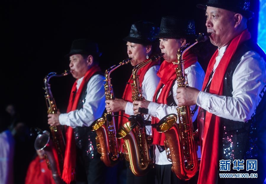 1月14日,杭州市余杭区中泰街道中桥村的文化公园内在进行“我们的村晚”萨克斯表演。临近春节,浙江省杭州市余杭区中泰街道各村社的文化礼堂纷纷上演“我们的村晚”。老百姓自编、自导、自演为主的“土味”联欢会因接地气、亲情浓而深受当地百姓的喜爱,成为当地乡村百姓的新年迎春“文化大餐”。近年来,中泰街道以文化振兴助推乡村振兴。目前,中泰街道下属各村陆续建成文化礼堂7个、社区文化家园2个,努力培育和挖掘出一批乡土文化人才及原创作品,2019年全年开展各类乡村社区惠民文体活动累计180余场次。新华社记者徐昱摄