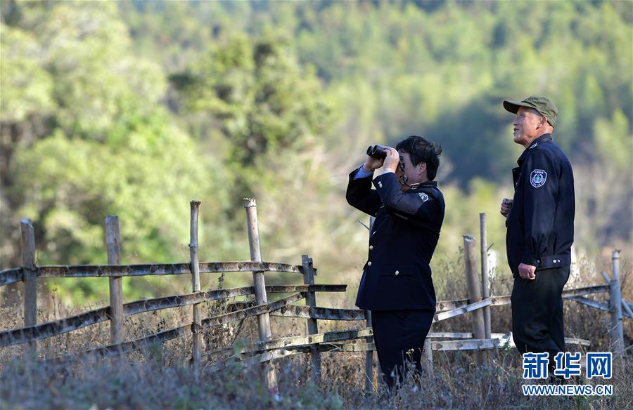 梁跃龙和梁跃武(前)在巡山路上(1月8日摄)。 新华社记者 彭昭之 摄