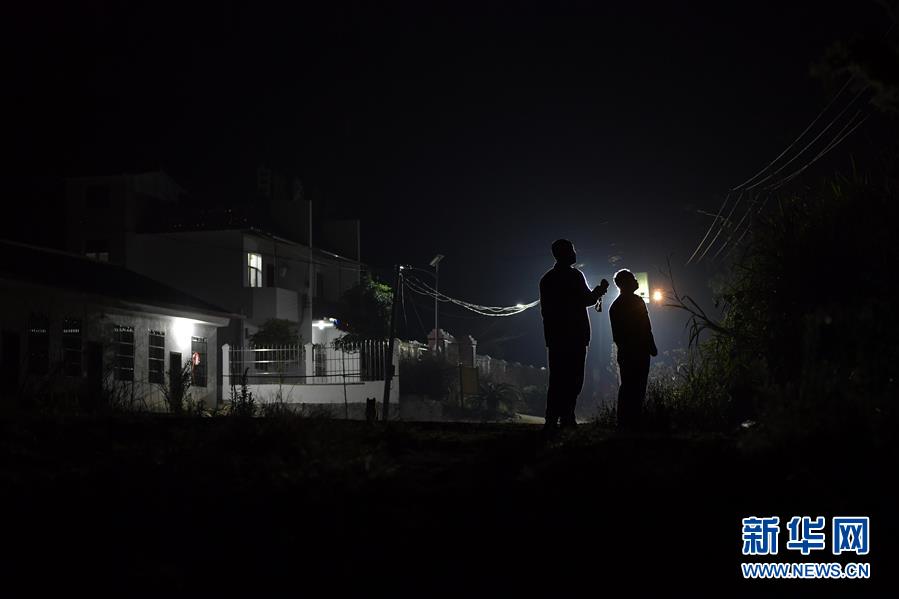 梁跃龙(右)和同事在进行夜间巡查(1月8日摄)。 新华社记者 彭昭之 摄