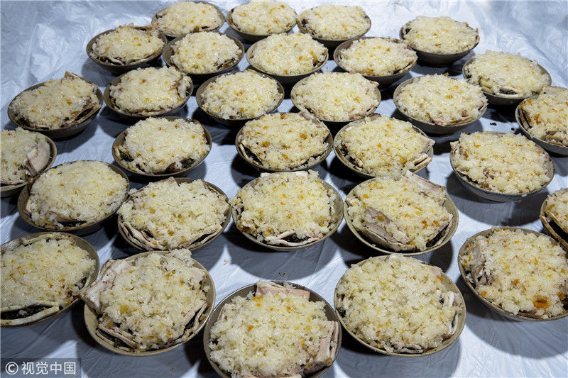 2019年1月26日,重庆中山古镇,880桌“千米长宴”5万人共品年味。街坊们在头天就开始准备各种菜肴与小吃。
