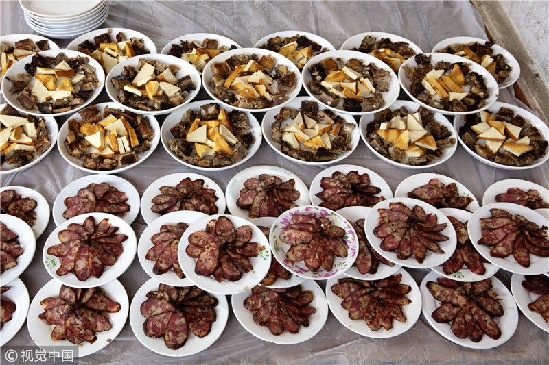 2019年1月26日,重庆中山古镇,880桌“千米长宴”5万人共品年味。880多张席桌在老街屋檐下一字摆开,“千米长宴”正式开席。周智勇/视觉中国