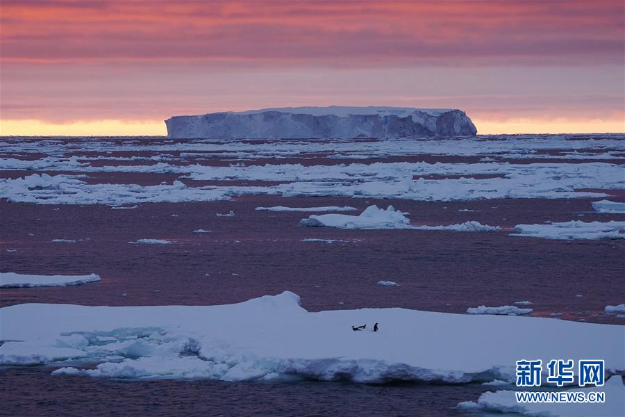 南大洋上的午夜冰山(2019年12月28日摄)。新华社记者刘诗平摄