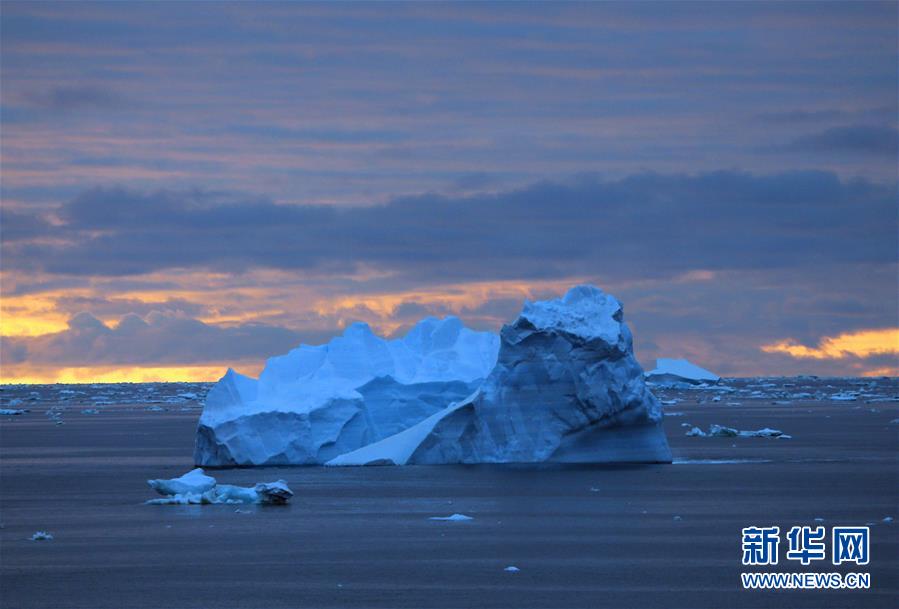南大洋上的午夜冰山(2019年12月11日摄)。新华社记者刘诗平摄
