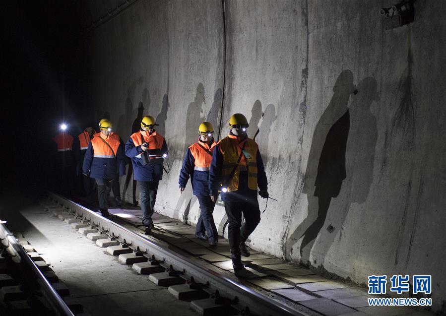 1月6日,在加格达奇工务段西罗奇岭二号隧道,西罗奇维修工队工作人员进行维修作业。新华社记者才扬摄