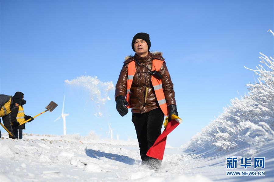 1月13日,白音库伦综合维修车间职工在作业点清理积雪。新华社记者刘磊摄