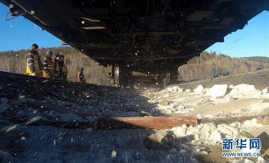 1月8日,西罗奇维修工队工作人员在嫩林线497公里处进行维修作业。新华社记者王毓国摄