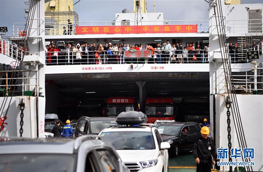 1月19日,乘客在客滚轮上等待下船。 新华社记者 郭程 摄