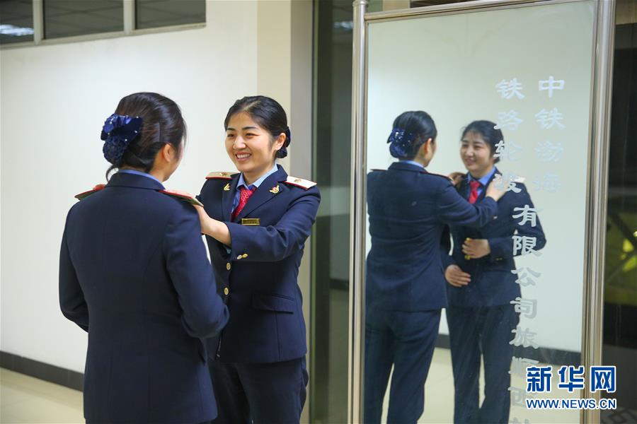 1月18日,王丽丽(右)为姐姐王娟娟整理制服。新华社记者 龙雷 摄
