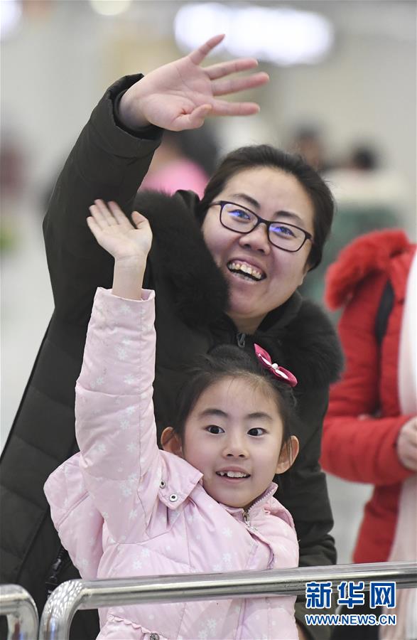 1月19日,一对母女在重庆西站出站口招呼刚到站的亲人。 新华社记者 王全超 摄