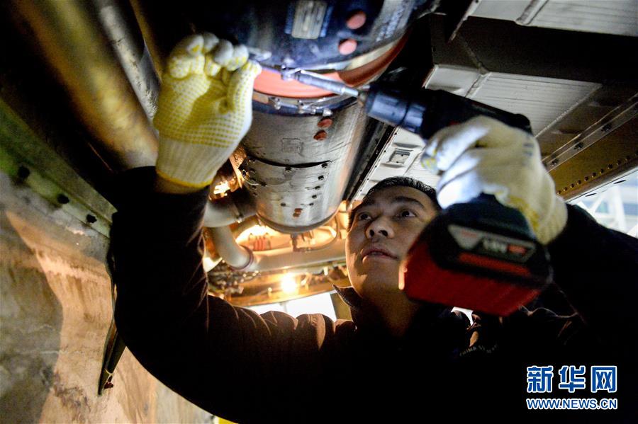 飞机维修工程师在安装空调系统管路(1月21日摄)。 新华社记者 丁磊 摄