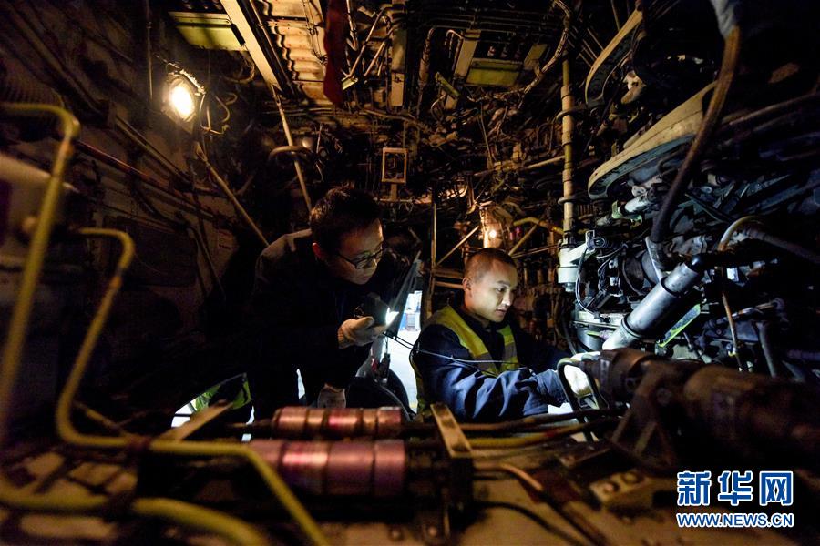 飞机维修工程师在飞机轮舱内检查液压系统(1月21日摄)。 新华社记者 丁磊 摄