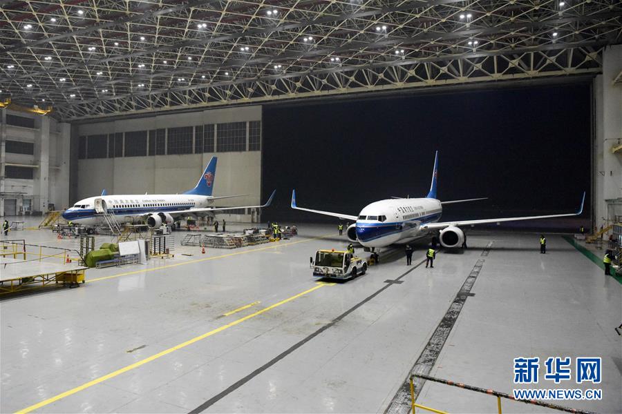待检飞机进入南航新疆分公司飞机维修基地(1月21日摄)。 新华社记者 丁磊 摄