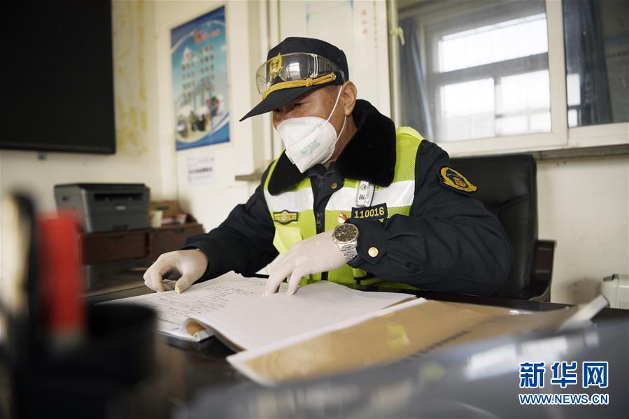 在银川市黄河辅道桥检查站,银川市公路路政支队稽查三大队的工作人员在汇总当日过往车辆、人员信息(1月31日摄)。新华社记者王鹏摄