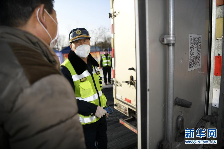 在银川市黄河辅道桥检查站,银川市公路路政支队稽查三大队的工作人员在对过往车辆进行检查(1月31日摄)。新华社记者王鹏摄