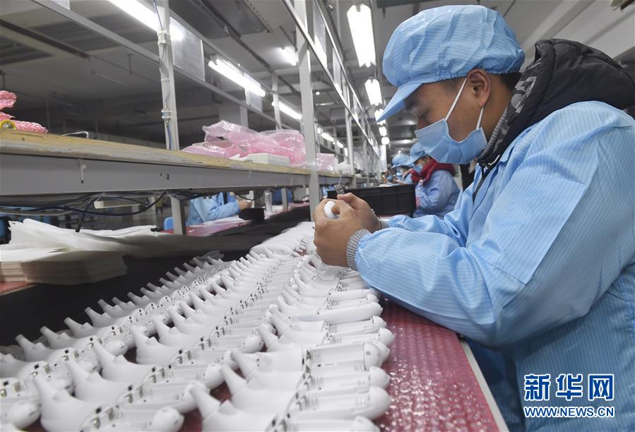 连日来,成都凡米科技有限公司员工加班赶工,开足马力生产手持式测温仪,保障防疫重点区域及人流密集区域使用需求。新华社记者刘坤摄