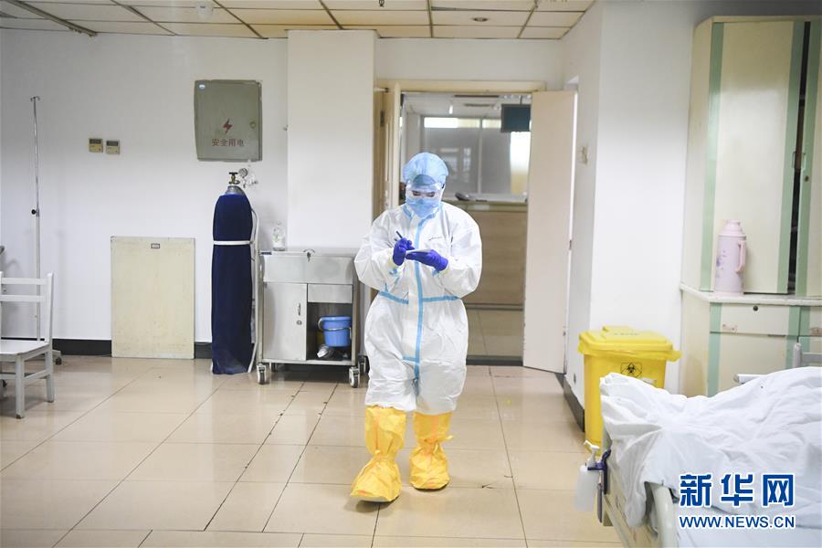 2月2日,黄霞在重庆三峡中心医院重症隔离病房内工作。新华社记者王全超摄