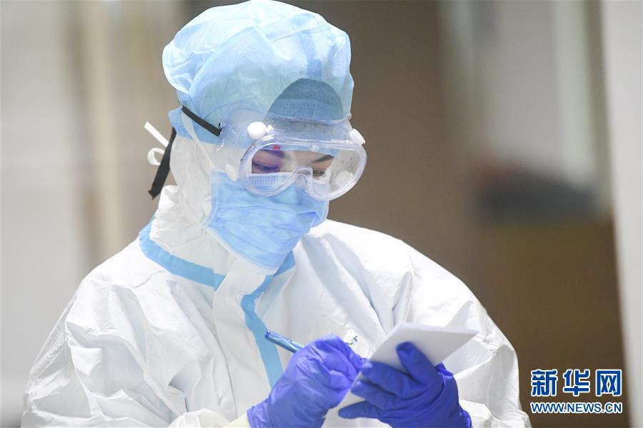 2月2日,在重庆三峡中心医院重症隔离病房,黄霞记录患者病情。新华社记者王全超摄
