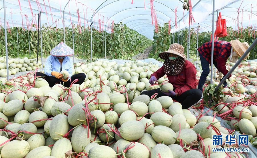 2月6日,在海南省乐东黎族自治县佛罗镇青山村瓜地,食品企业鲜丰水果股份有限公司的工作人员在挑选、收购哈密瓜。 近日,海南迎来哈密瓜上市旺季。受新型冠状病毒感染的肺炎疫情影响,前来海南收瓜的企业有所减少,但仍有部分食品企业就地招募收瓜工人,坚持平价收购哈密瓜,发往各地,一定程度上缓解哈密瓜滞销问题。 新华社记者 杨冠宇 摄