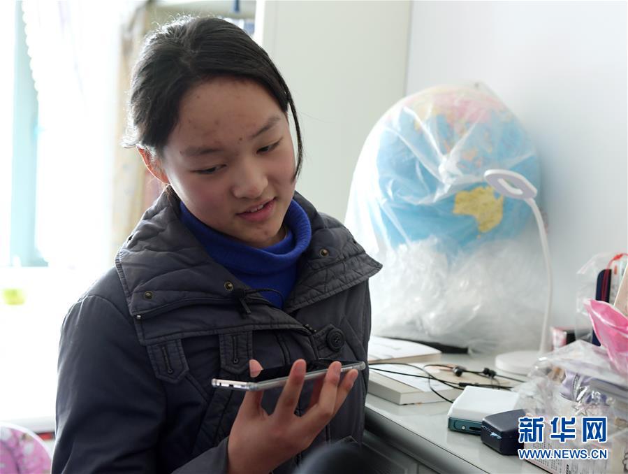 孙婉清在家中使用手机和父亲通话(1月29日摄)。新华社记者李贺摄