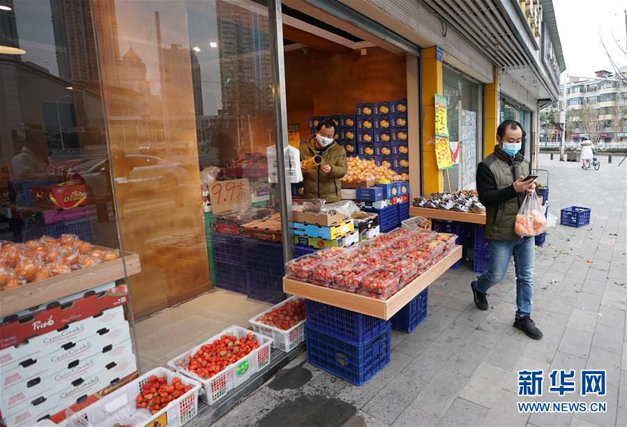 2月8日,武汉榴恋悠悠水果店利用元宵节之际搞起了促销。这是一位顾客从店里买完水果后离开。新华社记者王毓国摄