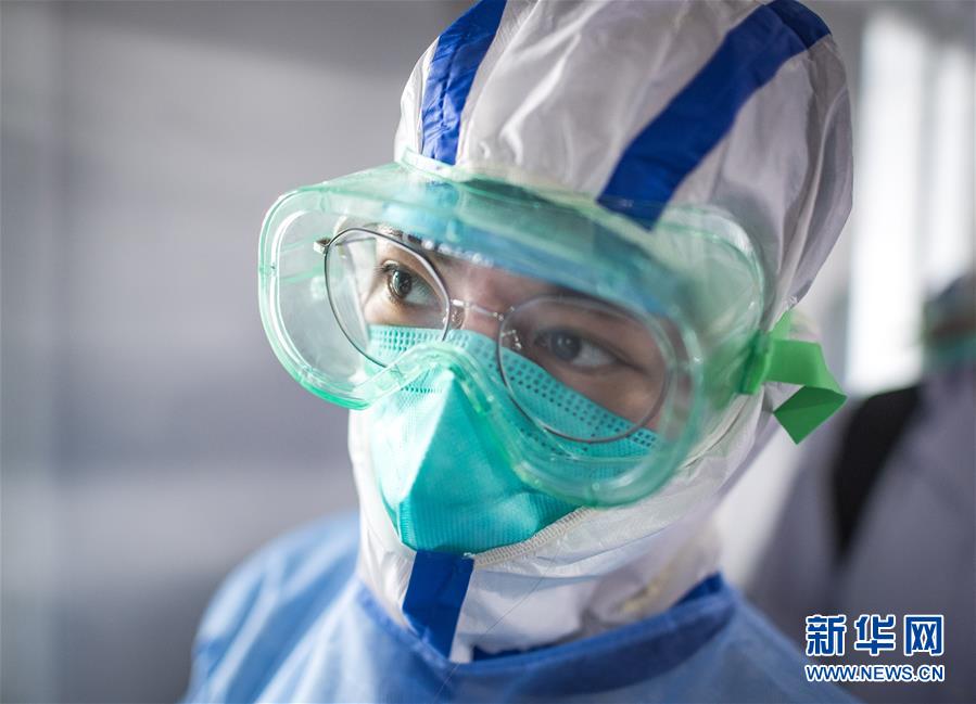 2月8日在武汉雷神山医院拍摄的一名医护人员。新华社记者肖艺九摄