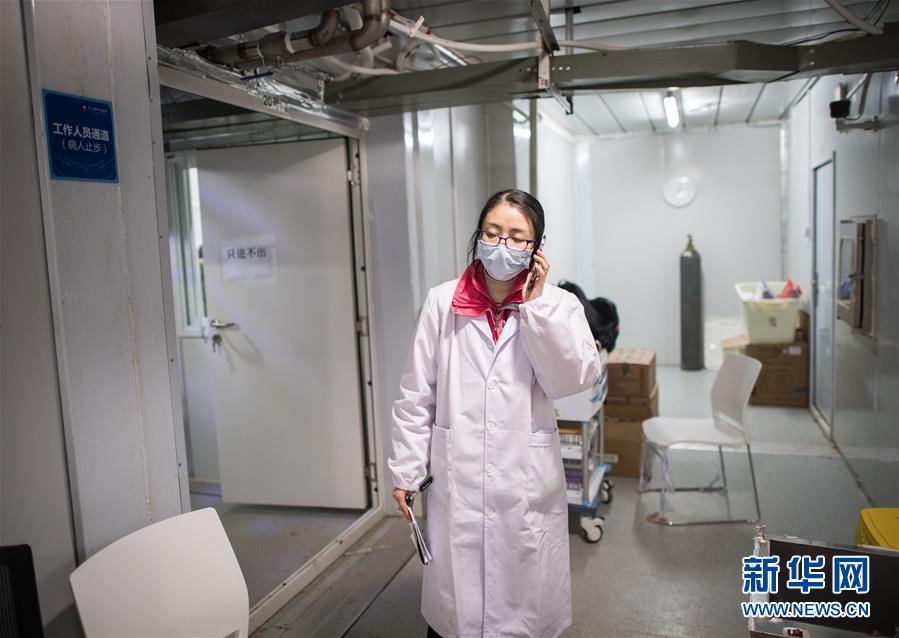 2月8日,一名医护人员在打电话。新华社记者肖艺九摄