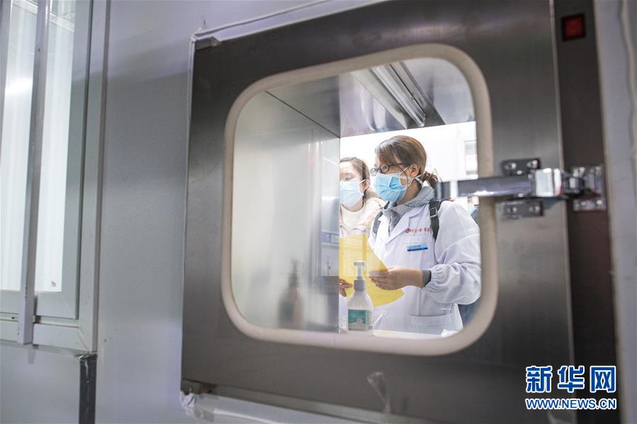 2月8日,护士陈香香(右)和张扣在熟悉病房环境。新华社记者肖艺九摄