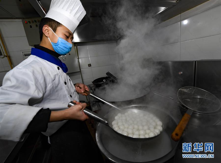 2月8日,宁夏银川市宁味楼餐饮员工为疫情防控一线工作人员准备元宵。 当日是元宵节,宁夏银川市宁味楼、伊盛手抓、昊御轩等多家符合疫情期间餐饮配送标准的餐饮企业,为疫情防控一线工作人员赠送热腾腾的元宵和爱心餐,表达对防疫人员的问候。 新华社记者 冯开华 摄